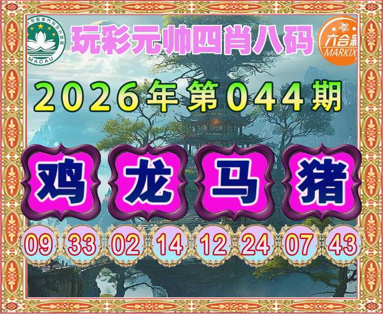 044期:【玩彩元帅】 🎈四肖八码🎈【鸡龙马】开:猪19