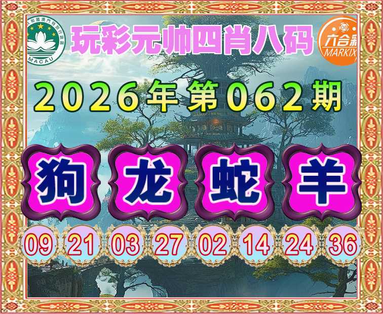 062期:【玩彩元帅】 🎈四肖八码🎈【狗龙蛇】开:羊24