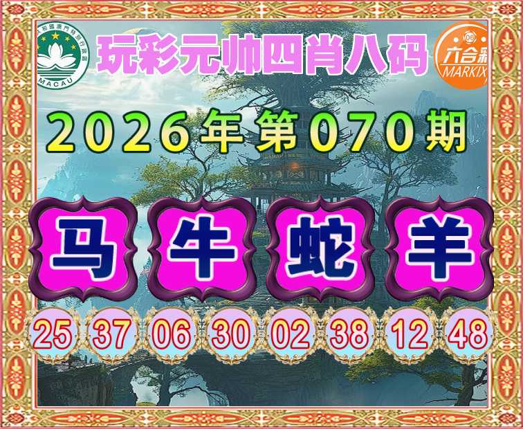 070期:【玩彩元帅】 🎈四肖八码🎈【牛蛇羊】开:马25