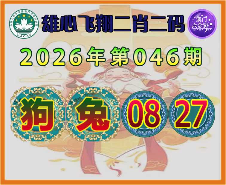 046期:【雄心飞翔】 🥫二肖二码🥫【狗兔】【08.27】开:兔03准