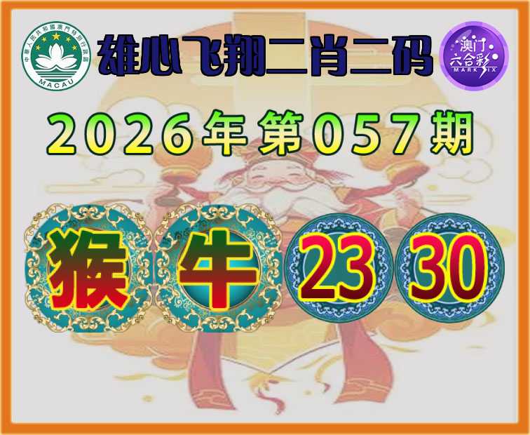 057期:【雄心飞翔】 🥫二肖二码🥫【猴牛】【23.30】开:猴23准