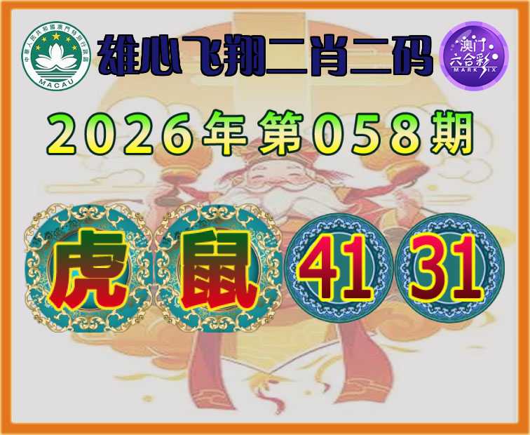 058期:【雄心飞翔】 🥫二肖二码🥫【虎鼠】【41.31】开:鼠31准